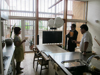 実際は、南側を全てガラス貼りにするような計画を行っても、建物の固定式の日射遮蔽(写真では縦格子)、深い軒の出、可変的に太陽光を遮光できる外付けブラインドを適宜操作することで、むしろ断熱建物は夏涼しく過す事が容易になること。厚い断熱により壁と屋根を暖まりづらくする方が通風、換気がよりよく作用することも説明させていただきました。北海道以外の研究者のみなさまの着眼点が、普段は道内のみのものの見方で凝り固まっている私には新鮮で、久々に頭を柔軟に様々な視点でものを捉える大切さを再認識させていただいた一日でした。これからもこうしたコミュニケーションを大切にさまざまな方々と交流し協働させていただくことで作り手としてもっともっと腕を磨きたいと思いました。遠くから北海道に来てくれたみなさん、ありがとうございます。またぜひお会いいたしましょう。