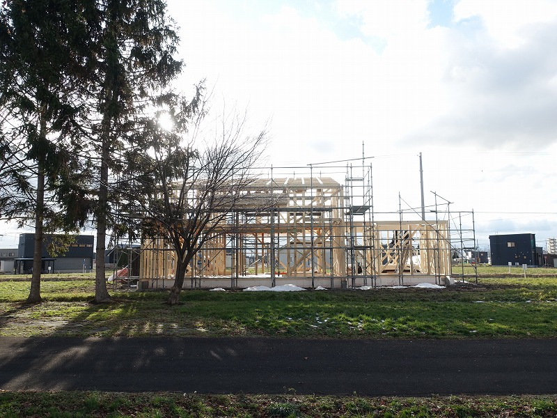 何とか本格的な積雪の前に足場を解体すべく、大工さんたちが頑張ってくれたおかげで外壁の押縁まで完了。後は窓周りのシーリングや太陽光パネルの設置を待つばかりです。